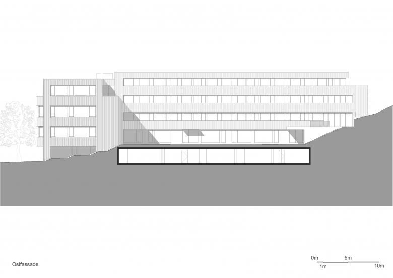 Das Projekt greift auf die steile Hanglage und die unterschiedlichen Baugrundtypen auf drei verschiedenen Fundamentarten zurück.