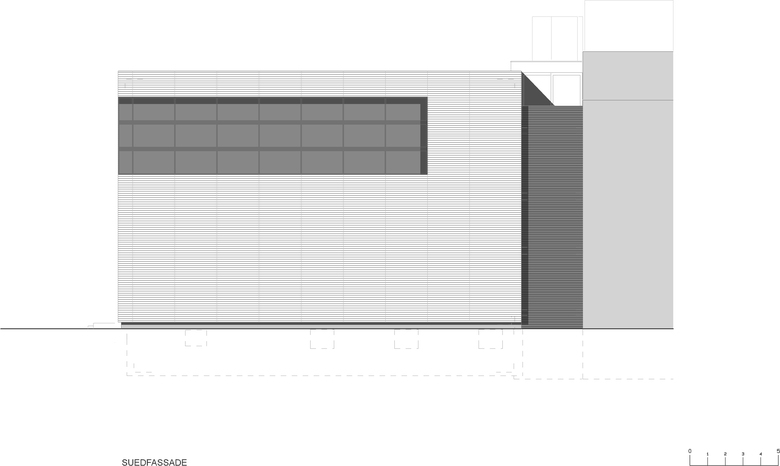 Die konzeptionelle Lösung besteht in der Einkleidung der bestehenden Gebäudestruktur mit einer neuen Fassadenhülle. Die Struktur bleibt als Ganzes erlebbar.