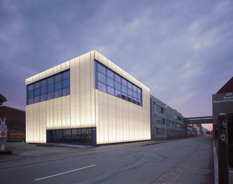 Die Aufgabe war die Neugestaltung des Baus 55 der Firma Regent Lighting. Im Zentrum stand die Neugestaltung des Showrooms der Büros und der Fassade. Mit dem Umbau sollte ein neues Erscheinungsbild geschaffen werden, welches die Philosophie der Firma repräsentiert.