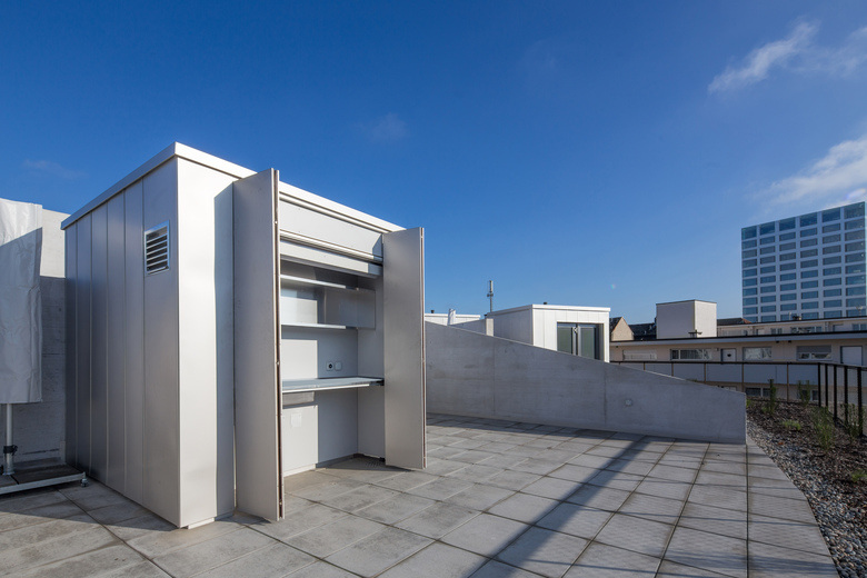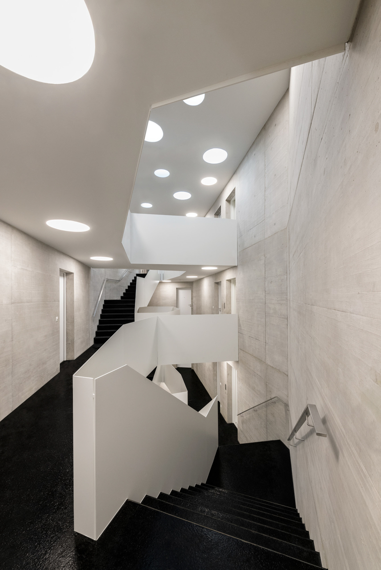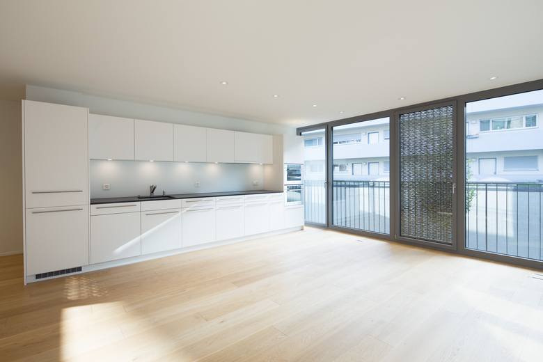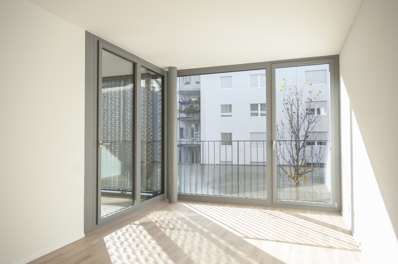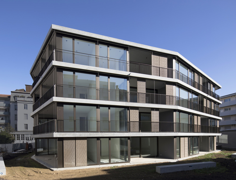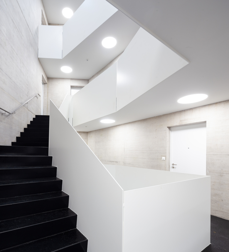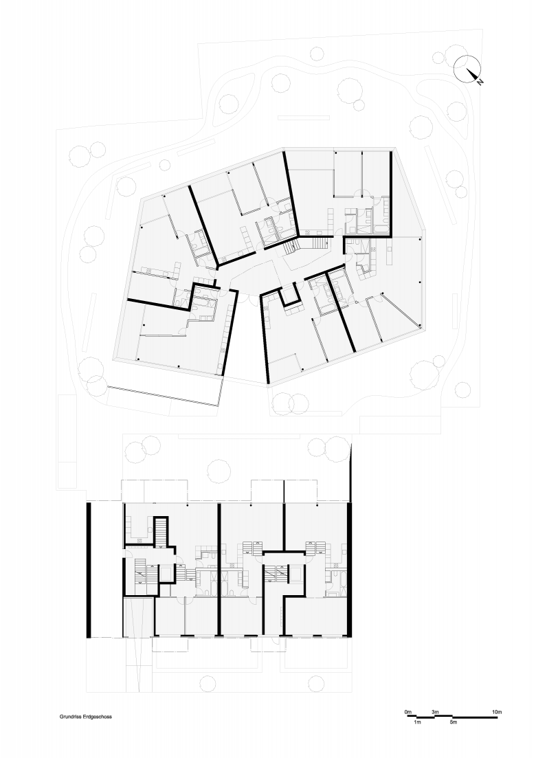 Die 43 Wohnungen sind attraktiv organisiert. Die durchgehenden Wohnungen haben aufgrund ihrer Geometrie eine hohe räumliche Qualität. Elf 3½ bis 5½ Zimmer-Wohnungen finden darin ihren Platz. Die Splitt-Level Erdgeschosswohnungen mit ihrem überhöhten Wohnraum verfügen über einen Gartenanteil.