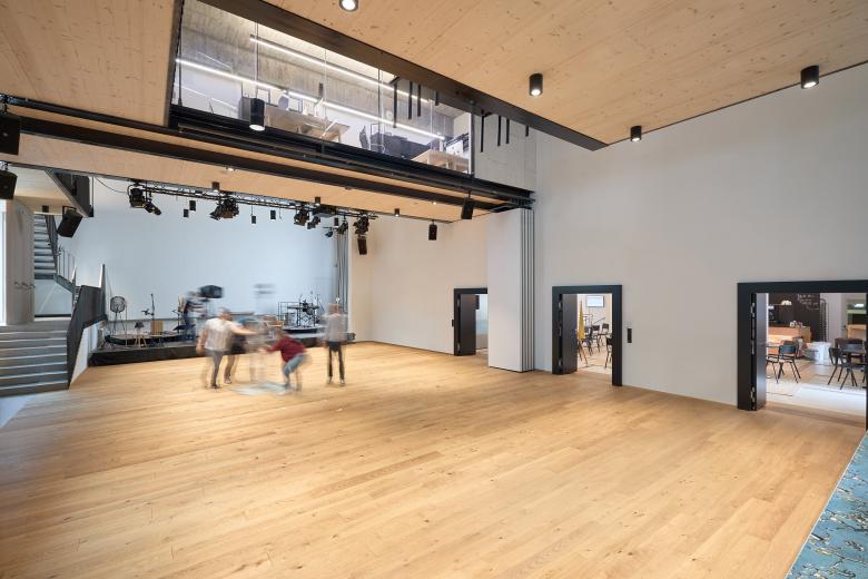Durch die mobile Trennwand kann die Halle für mehrere Zwecke gleichzeitig genutzt werden. Eine Seite wird gelegentlich für Meetings genutzt und die andere für Events inklusive Bühne. Die Bühne ist mobil und kann problemlos im Saal verschoben werden. Der Saal wird für digital übertragene heilige Messen, Vorträge, Tagungen, Konzerte, Lesungen und vieles mehr genutzt. Der Saal kann auch großzügig zur Festungsgasse hin geöffnet werden. Die Größe des alten Saales ist durch den Wechsel der Beläge sichtbar. So werden die Spuren der Vergangenheit ablesbar.