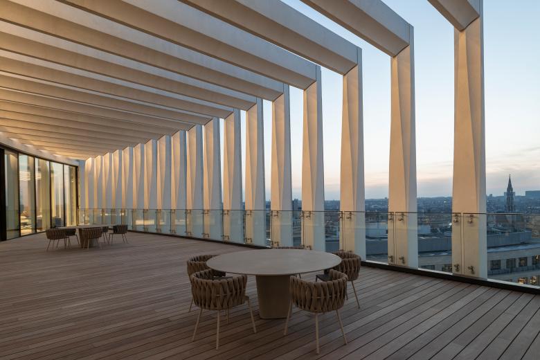 Max Jadot, CEO der BNP Paribas Fortis Bank, bilanziert: „Unser neues Gebäude, das anlässlich des 200-jähri- gen Bestehens unserer Bank eingeweiht wurde, ist ein Symbol für unsere Mission, gemeinsam eine positive Zukunft zu gestalten. Es wurde entworfen, um mit der Zeit zu gehen, und ist technologisch auf dem neuesten Stand, vor allem aber ist es ein Musterbeispiel für Nachhaltigkeit. Dieser einzigartige Ort im Herzen von Brüssel, der in der lokalen Gemeinschaft verankert ist, wird unseren Kollegen die Möglichkeit bieten, unter den besten Bedingungen zusammenzuarbeiten. Er ist zugleich offen und verbindend, perfekt in seine Umgebung integriert und fördert den Austausch.“