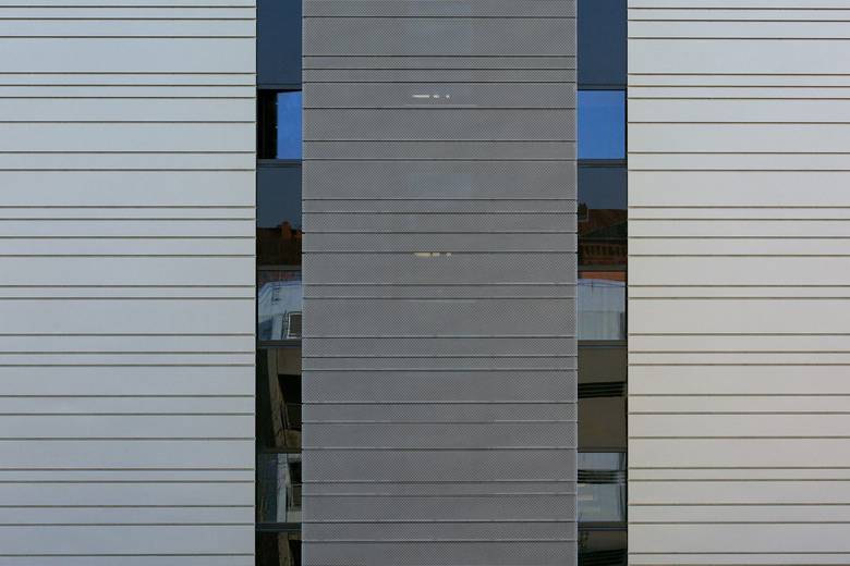 In enger Abstimmung mit den Fachplanern wurde eine Kastenfensterfassade mit verschiedenen Fensterqualitäten entwickelt, die je nach Jahreszeit funktionieren (Sommer- und Winterfenster). Diese geben durch ihre unterschiedliche Ausbildung auch die gestalterische Ausbildung der Fassade vor: Durch die vorspringenden Fenster entsteht ein lebendiges Bild.