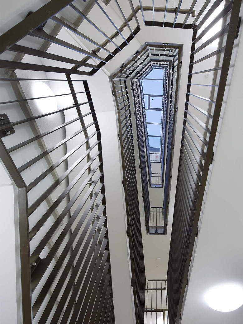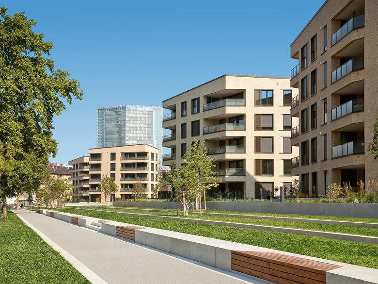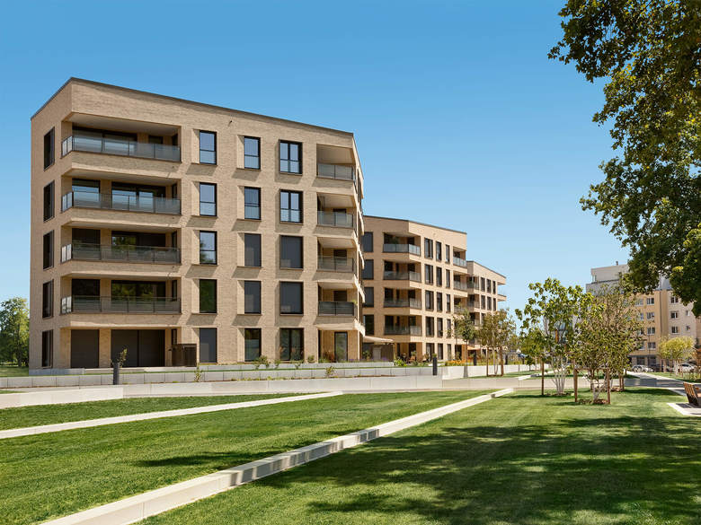 Der Gewinnerentwurf des architektonischen Wettbewerbs, ausgelobt von der Stadt Mannheim, sieht fünfgeschossige Stadthäuser mit insgesamt 100 Wohnungen vor. Wegen der exponierten Lage direkt an der öffentlichen Grünfläche war es besonders wichtig, eine sehr hochwertige und architektonisch anspruchsvolle Bebauung zu entwickeln. Das Konzept von blocher partners zeichnet sich durch seine weiche Kante zum Park hin aus. Die fünf Gebäude sind unregelmäßig polygonal angelegt - und lassen doch eine gemeinsame Architektursprache erkennen. Zugleich gewährleistet ihre Anordnung, dass ein breiter öffentlicher Übergang zwischen dem Hanns-Glückstein-Park und dem denkmalgeschützten Lokschuppen-Ensemble frei bleibt.