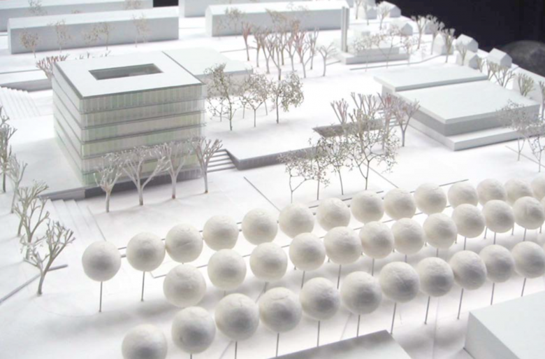 Der quadratische Schulturm lässt keine Hierarchie entstehen und bietet mit seiner Kompaktheit einen introvertierten Schulalltag. Die einzelnen Jahrgangsstufen sind schulartübergreifend zu kleinen Gruppen zusammengefasst und können je auf den unterschiedlichen Ebenen flexibel verteilt werden und erlaubt so dem Träger die gewünschte Freiheit und Veränderbarkeit innerhalb eines starken Konzeptes, ohne die Nutzungen einzuschränken. Der Unterricht findet organi- siert um eine grüne Halle statt, die in ihrer Mitte „die Medien und das Wissen“ sammelt und neben „hängenden Gärten“ als Ort der Kommunikation und der Begegnung dient