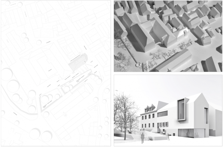 Der Ort verlangt einen respektvollen Umgang mit dem Denkmal - einerseits das historische Schloßgebäude „aus der Renaissance“ über alle Ebenen mit „neuem Leben“ zu füllen und in das Gesamtkonzept „Weinkompetenzzentrum“ mit einzubinden - andererseits den bereits mehrfach überbauten östlichen Anbau stadträumlich zu stärken und das Schloss näher an den Stadtraum zu rücken. Zur Altstadt wird mit der neuen Erschließung ein neuer „Kopfbau“ geschaffen, der zur Obertorstraße hin eine klare Raumkante bildet und somit den Stadtraum deutlich aufwertet.