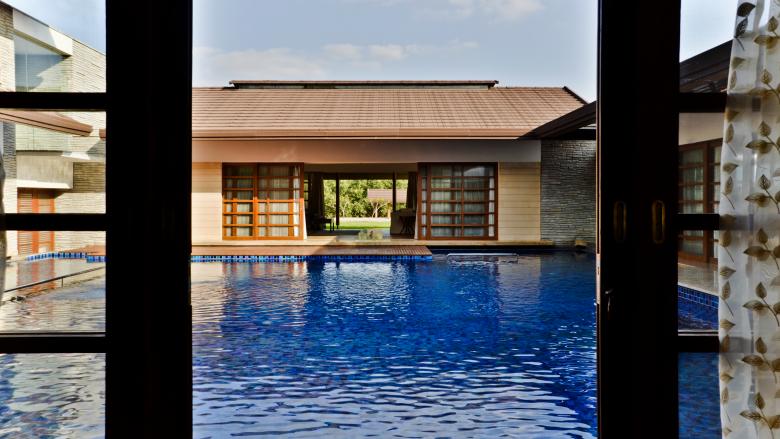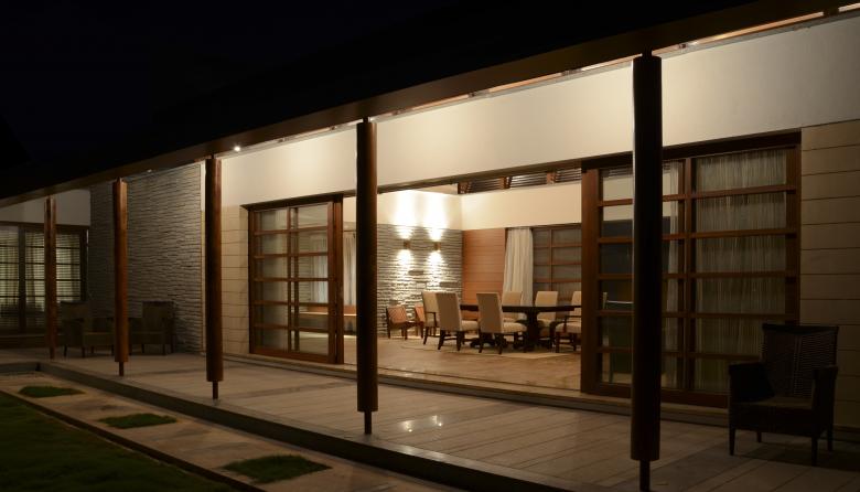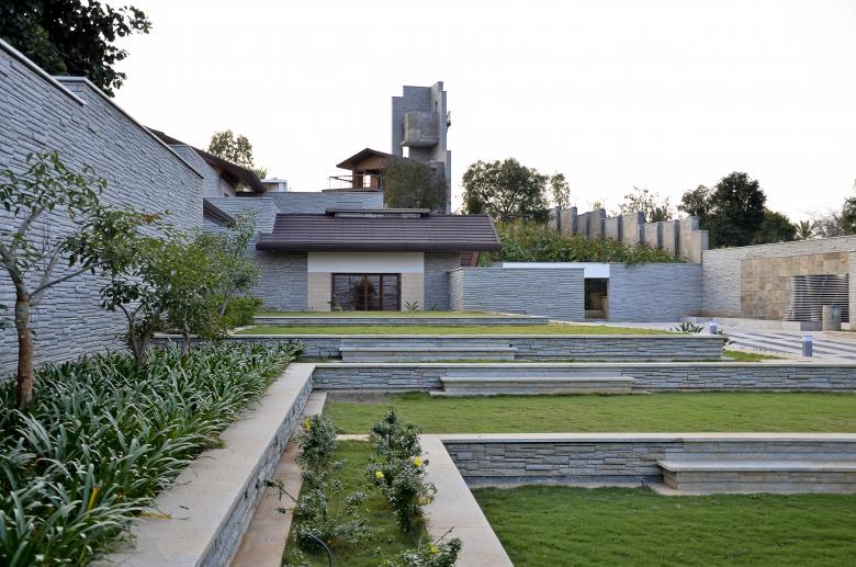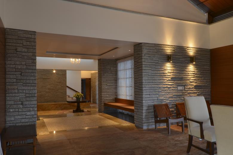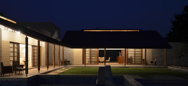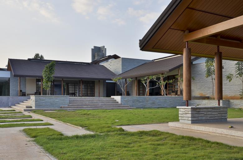 The Ramaiah House is a large family house located in Nelamangala on the outskirts of Bangalore, 30 kilometres from the city centre. The client desired a house that facilitates a contemporary lifestyle while evoking tradition and history.
