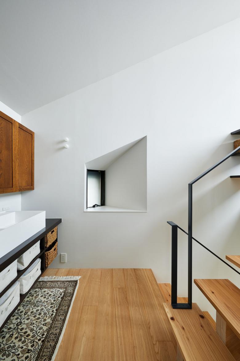 既存家屋解体時に現れた敷地を二分する擁壁を人工物でなく現代的な地形と捉えると、そこは唯一無二の魅力的な敷地にも思えてくる。
