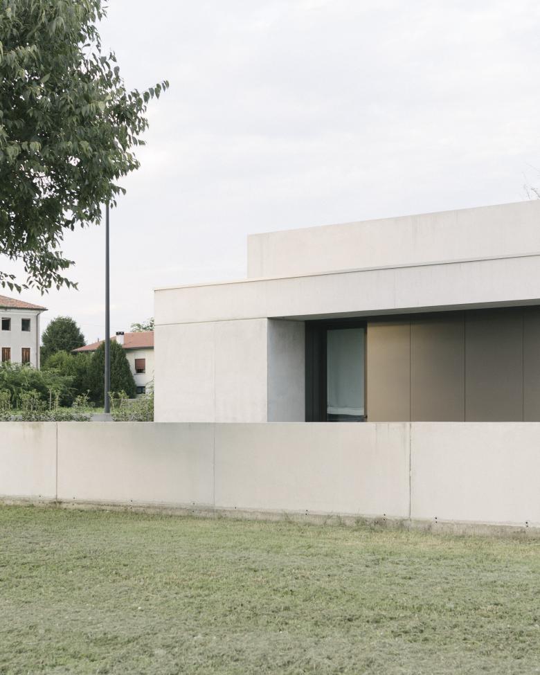 Progetto per una nuova abitazione in un quartiere residenziale nei pressi di Bassano del Grappa. L’edificio è composto da una grande “piastra” che racchiude gli spazi interni e li protegge dagli sguardi con l’utilizzo di patii verdi e membrane più o meno permeabili in laterizio. Al di sopra di essa vi sono due volumi che completano la parte sommitale dell’edificio, quello più grande contiene la zona notte, mentre quello più piccolo cinge una terrazza solarium raggiungibile dalla zona notte.