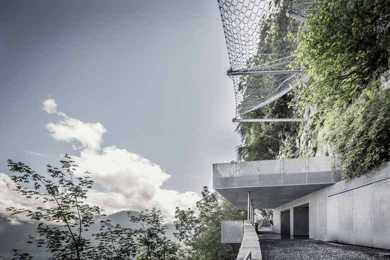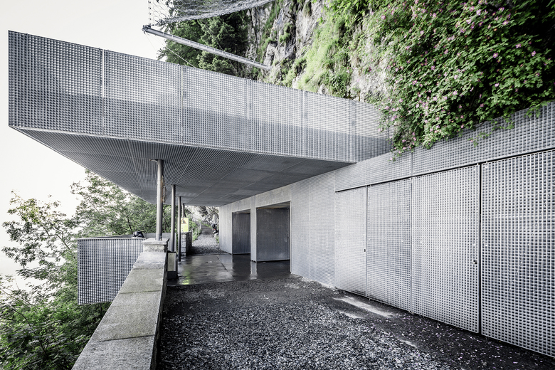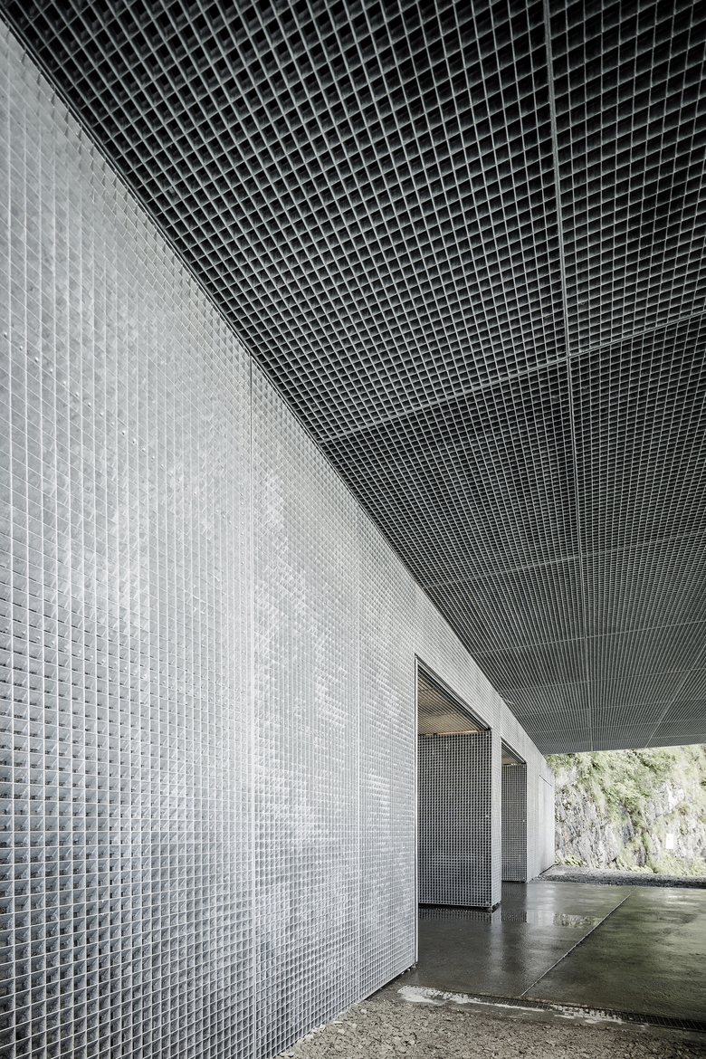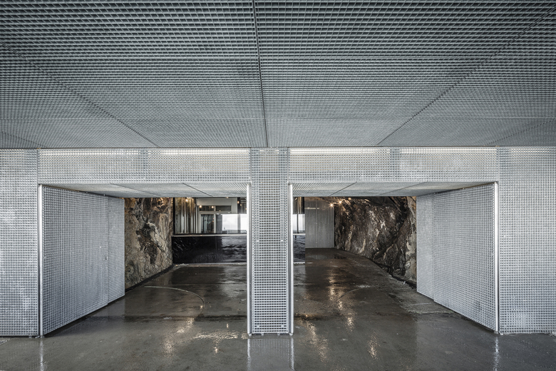 Dolmus Architekten stellen im Innern den ursprünglichen rohen Zustand der Kaverne wieder her. Die bestehende innere Hülle, Wand- und Deckenverkleidungen, werden bis auf die technisch notwendigen Räume herausgebrochen und der Fels räumlich inszeniert. Die historische Liftanlage wird in einem freistehenden Glaskörper geschützt und sichtbar gemacht. Der rohe Betonboden wird ausgebessert und die Kaverne wo nötig gunitiert. Der Eingangsbereich und das Vordach werden mit feuerverzinktem Gitterrost einheitlich und zurückhaltend eingekleidet. Für die Beleuchtung der Kaverne werden funktionale Leuchtkörper aus dem Tunnelbau verwendet.