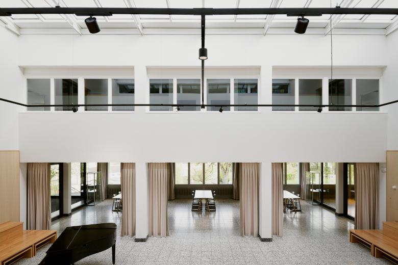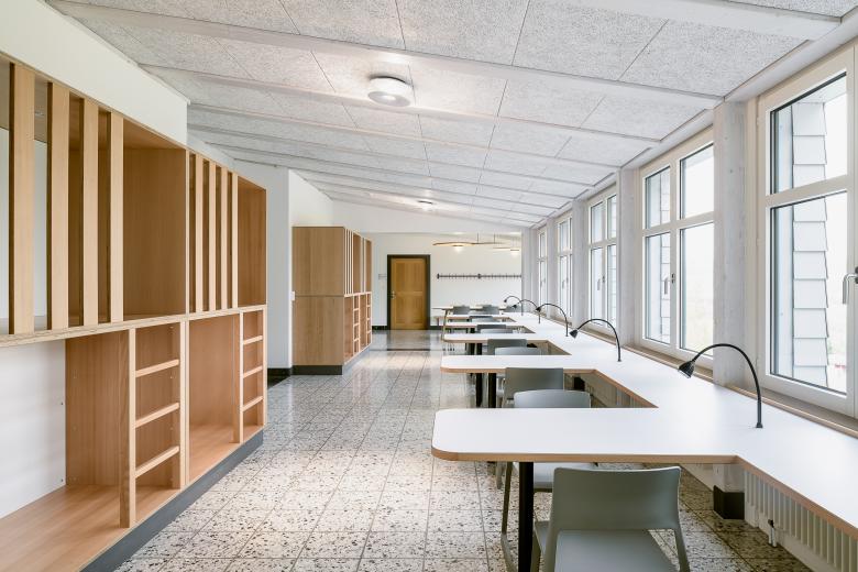Die Brandschutzertüchtigungen betreffen überdies nicht nur den Neubau von 1995, sondern auch den östlich liegenden Altbau. Der Umbau wurde in 2 Etappen realisiert - E1 Sommerferien 2023 / E2 Herbstferien 2023.