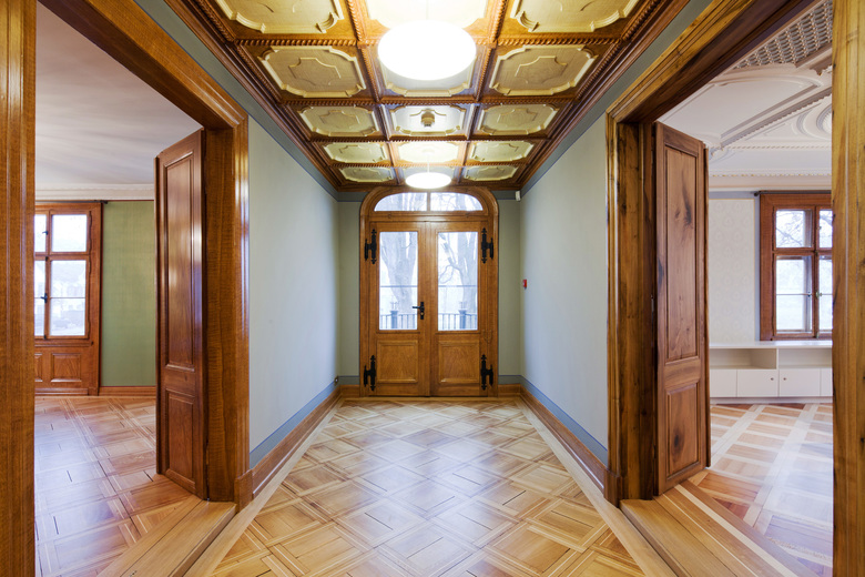 erworben werden. Der aufgestaute Sanierungsbedarf und die durch Fäulnis entstandenen Schäden an der Fachwerkfassade erforderten eine Totalsanierung. Nach umfangreichen Sondagen konnte der klassizistische Bauzustand von 1864 unter diversen Farbschichten herausgeschält werden. Das zur Anwendung gekommene Farbkonzept sowie die Rekonstruktionen unterschiedlicher Bauteile beruhen auf diesen Erkenntnissen. Die Raumstrukturen konnten erhalten und mit wenigen gezielten Eingriffen − der Garderobe, Einbaumöbeln und einer Treppe ins neu ausgebaute Dachgeschoss − ergänzt werden. Die Wände erhielten wieder bunte Tapeten bzw. farbige Anstriche, die Parkettböden wurden allesamt saniert, d.h. ausgebaut, geschliffen, ergänzt und wieder eingebaut. Stuckdecken mussten erst von unzähligen Übermalungen befreit werden, bevor ihre Schönheit sichtbar wurde und
