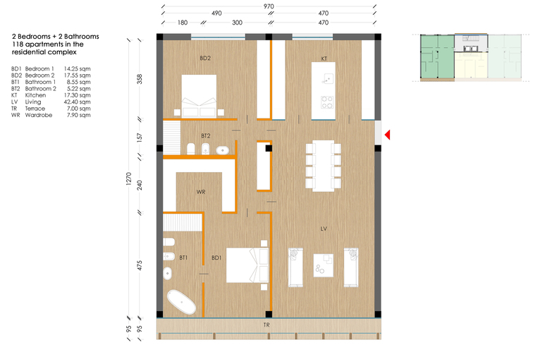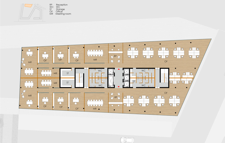 The project is located on Kipsala island, on the left side of river Daugava, in front of the old centre of Riga, with a total building area of 36.000 sqm. The project is composed by two units: Kipsala Residence, a residential complex with about 200 apartments different in dimensions, two private internal courts and related facilities, and Kipsala Directional Centre, a commercial and directional building with a roof top restaurant. The main design purpose is to take advantage of the plot position, allowing all the residential units to enjoy the privileged view of the river and the old city centre. The volume develops all along the plot with a sinuous movement, fronting the river with a transparent skin, filtered by wooden vertical brise-soleils, and putting forward the street an opaque façade. The roof of the entire building is not plate but moves with different grades, giving to the complex a dynamic and lightened aspect, emphasized by deep cuts which pass from part to part the architectural volume, lending a visual permeability. The design aims to guarantee the best privacy level permitted by the plot position, so the directional centre is completely separated from the residential area and protects it and the main court from street noises and view. The facade fronting the water is entirely transparent and variable, sliding glass windows let the space flexible. This idea of architecture overcomes the traditional distinction between interior and exterior: “osmotic” architecture looks for adaptable and permeable spaces, places where Is generated a continuous flux of relation between architectonic manufactured and the environment. Kipsala Complex meets the eco-sustainability principles: thanks to the use of building and finishing materials recycled and recyclable, requiring low energy consumption for their production, low-cost maintenance and a long life cycle; thanks to the use of renewable energy sources and the energy saving orientation.