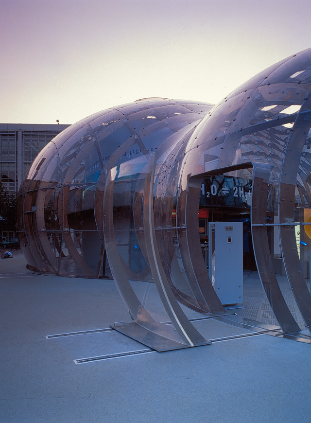 Lange bevor Nachhaltigkeit zum Modewort geworden ist, wird im ersten von Franken realisierten BMW Messeauftritt, das Fahren mit der „Clean Energy“ von Wasser und Sonne, symbolisiert in der Form eines ikonischen Gebäudes: ein Wassertropfen. Für die Erzeugung dieser Form dient ein Computerprogramm zur Tropfensimulation. Der Bubble war eines der ersten durchgängig vom Entwurf bis in die Fertigung digital gefertigten Gebäude weltweit.