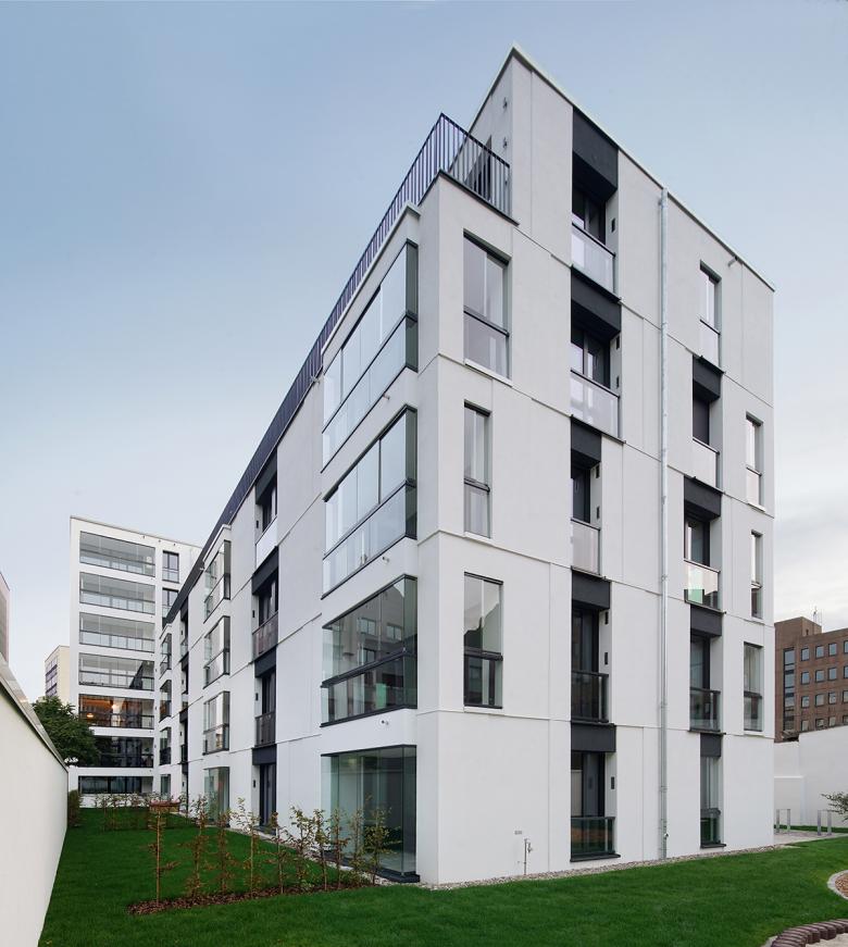 Im urbanen Deutschherrnviertel in Frankfurt Sachsenhausen hat Franken Architekten für die Lechner Group ein hochwertiges Wohngebäude mit 28 Wohnungen von 49 bis 144 m² Wohnfläche, zwei Penthouse-Wohnungen und einer Praxis bzw. Bürofläche geplant.