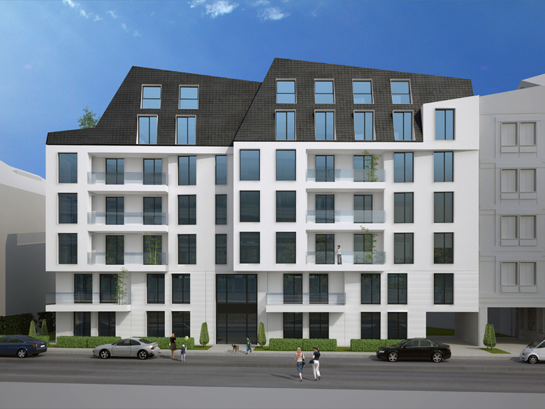 Der ADAC Hessen Thüringen e.V. hat Franken Architekten für die Generalplanung eines Stadthauses im Frankfurter Westend beauftragt. Um der steigenden Nachfrage nach Wohnraum zu entsprechen und eine höhere Effizienz zu erreichen wird das Bestandsbürogebäude abgerissen und ein Neubau mit 16 hochwertigen Wohnungen mit hohem ökologischem Standard errichtet. Der Charme und Charakter der typischen gründerzeitlichen Westendbebauung soll erhalten bleiben und wird im Entwurf mit markanten Gestaltungsmerkmalen wieder aufgegriffen und in zeitgenössischer Architektursprache neu interpretiert. Durch eine Neuinterpretation der Erker, als Verzahnung zwischen Dach und Fassade wird die Fassade aufgelockert. Vor-und Rücksprung brechen hierbei die Baulinie auf. Die Firstlinie nimmt die Bezugsachsen der ebenfalls von Franken Architekten geplanten “Villa Clara“ Hotelbebauung auf, während die Trauflinie zwischen den unterschiedlichen Höhen der Nachbargebäude vermittelt.