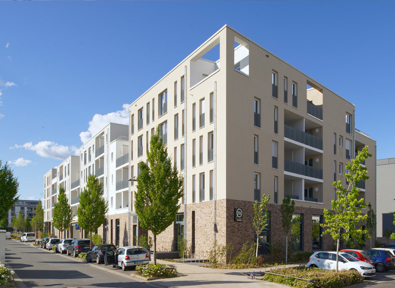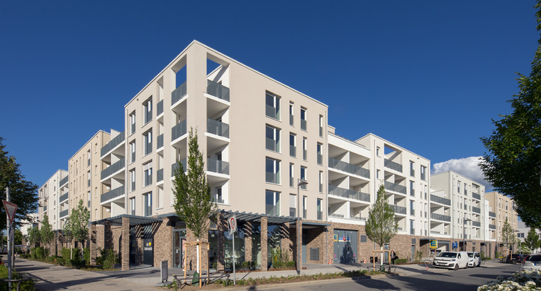 Für das repräsentativ gelegene Baugrundstück am Frankfurter Riedberg hat Franken Architekten in einer Arge mit Berghof + Haller Architekten im Auftrag von Groß & Partner einen Geschosswohnungsbau zur Miete und Gewerbeflächen im Erdgeschoss geplant. Der Entwurf wurde bis einschließlich Leistungsphase 8 in enger Abstimmung mit dem Bauherrn und den städtischen Vertretern begleitet. Die ABG FRANKFURT HOLDING hat das Gebäude erworben und ist Vermieter der 97 Wohnungen.
