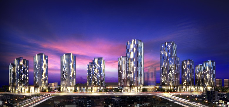 Die 12ha große Stadterweiterung „U-Silk City“ im Süden der vietnamesischen Hauptstadt Hanoi ist das größte im Bau befindliche Projekt in Vietnam und besteht aus neun hochwertigen 28-50 geschossigen Wohn-Hochhäusern und vielfältigen öffentlichen Freizeit- und Shoppingangeboten im verbindenden, begrünten Sockelgeschoss.Die vorgegebene Gebäudetiefe des bereits existierenden und von Franken Architekten zu optimierenden Masterplans wird durch Voids gegliedert und führt durch diese zur Oberflächenvergrößerung, erhöhter Belichtung der innenliegenden Räume, sowie einem guten Mikroklima. Die Voids sind in einer parametrisch generierten rhythmischen Struktur gesetzt und werden so zu „dancing voids“. Jedes Wohn-Hochhaus hat seine eigene rhythmische Struktur, so dass eine Komposition aus neun ähnlichen, aber dennoch einzigartigen Gebäuden entsteht mit zusätzlichen Flächen, die als „Sky Garden“ genutzt werden und Architekturutopien der Vertikalen Stadt referenzieren.Die Wohntürme sind gekennzeichnet vom Spiel mit gefülltem und leerem Volumen, welches sich in der verschachtelten Dachlandschaft mit luxuriösen Penthouse Apartments fortsetzt. Die das Gebäude wie ein Gewand umhüllende Fassadentextur ist aus eloxierten, irregulär rhythmisch in zarten Farben oszillierenden Aluminiumpaneelen und lässt, ebenso wie die welligen Faltungen der geplanten Landschaftsarchitektur, die Assoziation von Seide entstehen, einem der traditionellen Handelsprodukte von Hanoi.