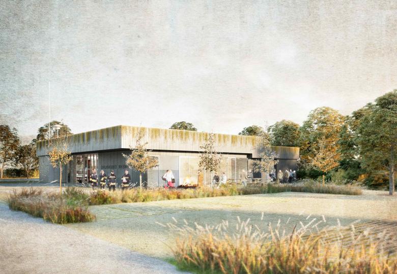 Auf dem Gelände des ehemaligen Fußballplatzes am Dorfrand schmiegt sich der Neubau der Feuerwehr auf dem flaschenhalsartigen Grundstück in den hinteren Grundstücksteil und bedient mit seiner Positionierung optimal die funktionalen Abläufe im Alarmfall. Ein höchst effizienter Grundriss und die Höhenstaffelung des Baukörpers reduzieren die Kubatur auf ein Minimum. Mit Holzbau, Dachbegrünung, PV und einer engagierten Landschaftsarchitektur liefert das Projekt einen wertvollen Beitrag zur ökologischen Nachhaltigkeit im kommunalen Bauen. Zum ersten Mal konnte die Stadt Memmingen ein Projekt realisieren, bei dem das Holz aus dem eigenen Stadtwald kommt.