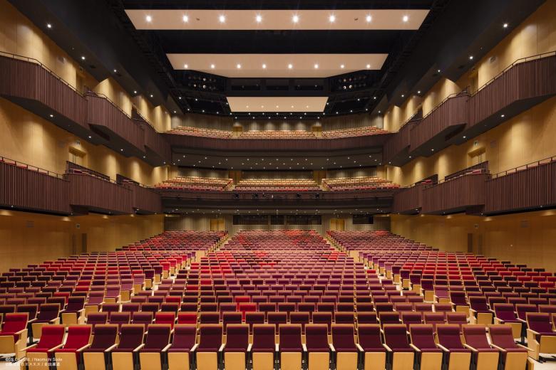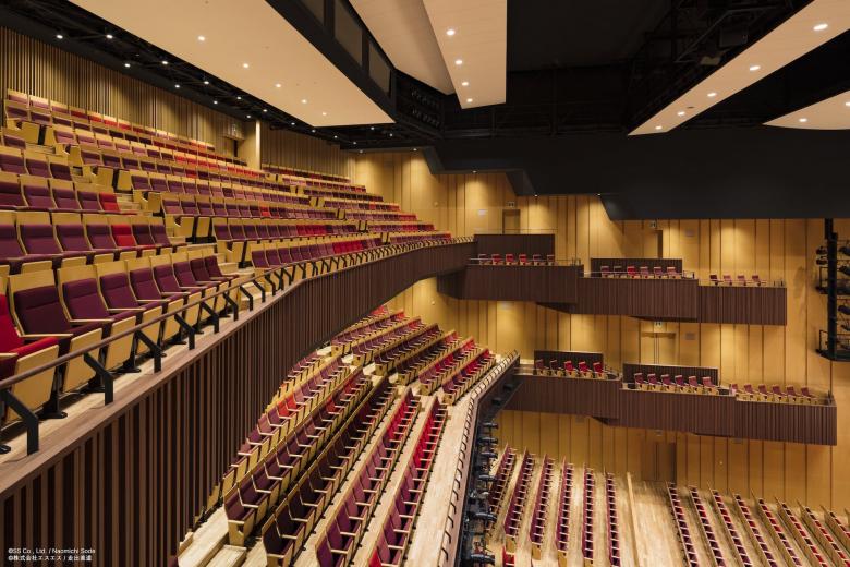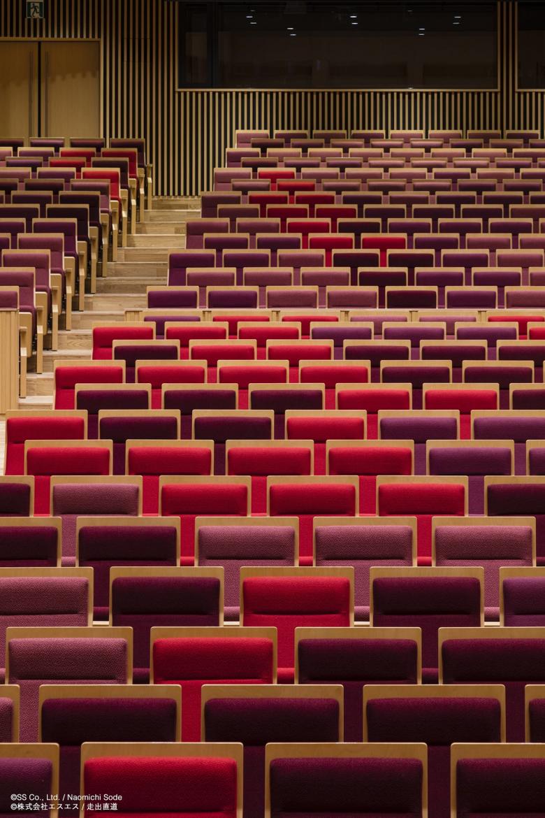 劇場内のインテリアは、外装のカラーアートウォールのデザインと同様に、客席全体をアートとしてとらえ、全体のカラーグラデーションで、劇場空間の高揚感を表現した。