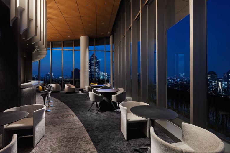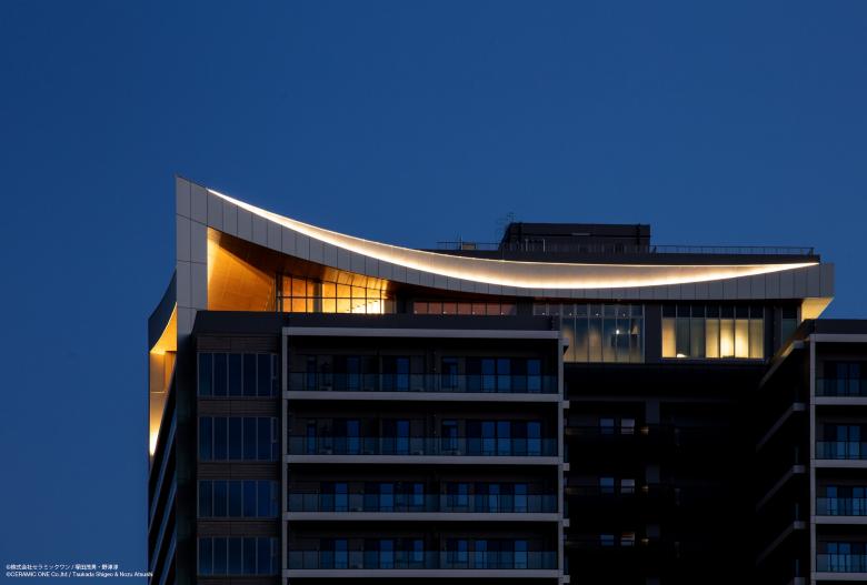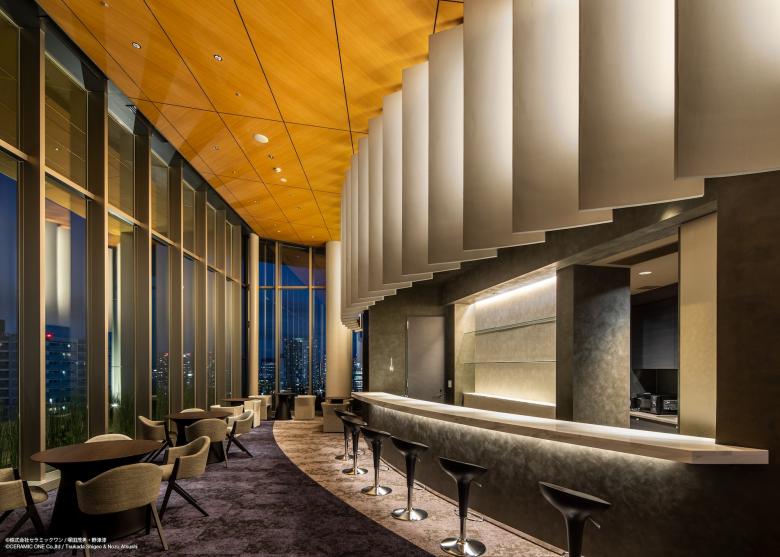 最上階・ペントハウスは「月」に一番近い場所として「天空のラウンジ」と位置付け、高さ6メートルのガラスウォールを贅沢に配置している。 外装の黄金色に輝くルーフの軒天とインテリアの天井面の素材感を揃えることでひとつの大きな面としてデザインし、ラウンジが外の空間に大きく開かれた印象をつくり上げ、遠くから見た時には建物に吸い込まれるように光る曲面が空に浮かぶ「月」を思わせるデザインとしている。 その他にもフィットネススタジオやスパ施設を兼ね備えた最上階は、日常から解き放たれた大人の美意識を満たす時間が過ごせる上質な素材を使用している。