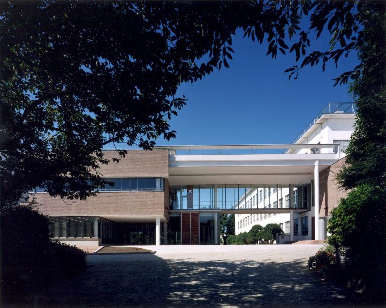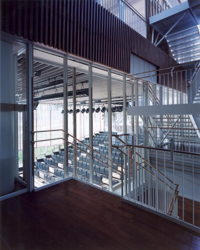 日本で最も長い歴史をもつ私立中学校校舎一部の改築として、ホール、メディアライブラリー、教職員室と教室といった複合機能をもたせて計画された。鉄骨ラーメン構造にれんが積の外壁と、木の内装材を組み合わせ、素材のもつ伝統の記憶、重さと、その内側に軽やかに展開する空間、未来の共存をめざした。既存校舎との接続部である渡り廊下は、校庭への門を構成し、学校の顔ともなる。