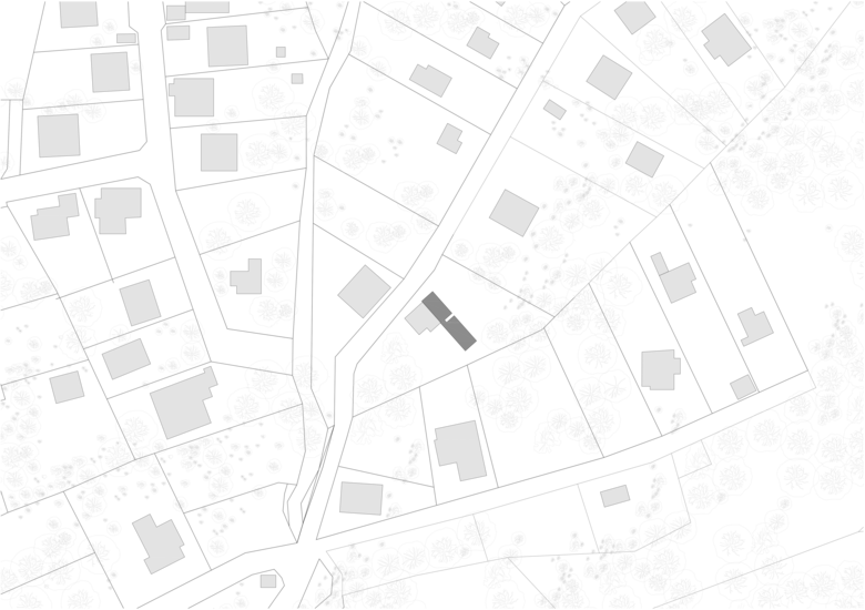 Der Zubau wurde nordöstlich des Bestandsgebäudes situiert. Es ist ein langgestrecktes, eingeschossiges Gebäude in Massivbauweise, welches in den Hang eingegraben wurde. Durch die Einschüttung des Zubaus und die Begrünung des Daches wurde erstmalig eine ebene Gartenfläche geschaffen. Belichtet wird der Zubau durch die vollständig verglaste Südfront welche durch das massive Vordach verschattet wird. Zusätzlich erfolgt eine Belichtung über runde Lichtkuppeln. Dadurch erhalten auch jene Bereiche Tageslicht, welche direkt hinter dem Bestand liegen, wie Badezimmer und Werkstatt. Der Bestand wurde im Erdgeschoß adaptiert um eine innenliegende Verbindung der beiden Bauteile zu ermöglichen. Eingangsbereich, WC und Bad wurden umorganisiert. Das neue Badezimmer und das WC liegen nun zentral gelegen im Zubau.