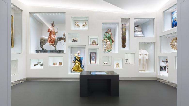 Das Kulturkabniett »Heimat im Kleinformat« beispielsweise widmet sich den Gemeinden mit ihren zigtausenden Ortschaften und setzt der Vielfalt Bayerns ein Denkmal. Mit Hilfe von Augmented-Reality-Technik können mehrere Besucher gleichzeitig in der Geschichte ihrer Heimat bis ins Detail stöbern: Am Medientisch, einer raumfüllenden Bayernkarte, finden Besucher mittels Tablet alle heutigen 2.056 Gemeinden mit Ansichten aus der Zeit um 1900, inklusive statistischem Material, Gemeindewappen und einigem mehr. Wer wissen möchte, welche Gemeinde wie viele Kühe hält, ist hier richtig.