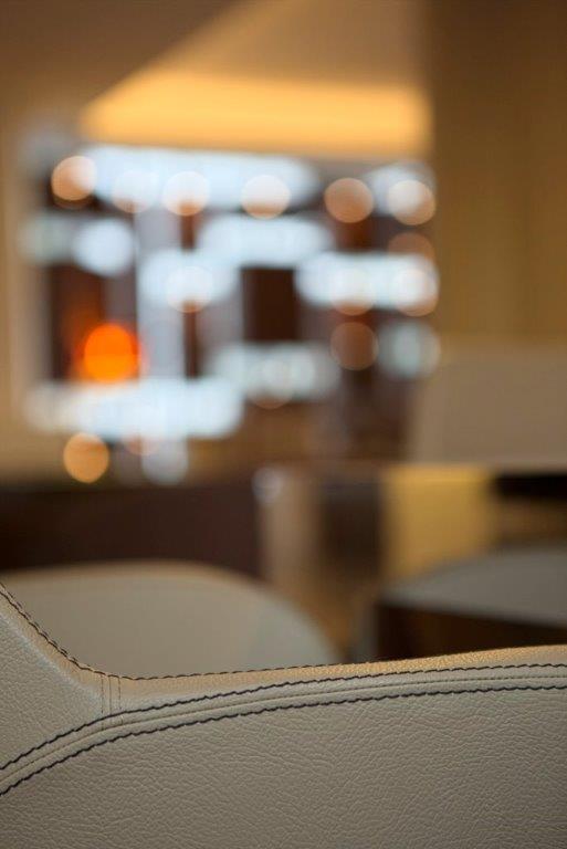 Diese Bar „funktioniert“ und wird allen Bedürfnissen gerecht, da sie mit verschiedenen Sitzqualitäten und –höhen sowie einem geschickten Lichtkonzept Raum für alle Gelegenheiten bietet und dadurch einladend auf Business- und eben auch die Leisure-Gäste wirkt. Individuelle Design-Details verleihen der Bar die dazu nötige Atmosphäre. Als Eyecatcher mit regionalem Esprit fallen zum Beispiel die Hängeleuchten über dem Bartresen ins Auge, bestehend aus verschiedenen leicht verspielten Kristallglas-Flakons, die vor allem in den Abendstunden einen dezenten gelb-goldenen Schimmer verbreiten. Durch das Zusammenspiel mit modernen geradlinigen Elementen, wie dem vierteiligen Tisch im Lounge-Bereich der Bar mit glatter und hochglänzender Oberfläche oder der Stehleuchte mit einem Gräser-Motiv im Lampenschirm, unterstreichen das erstklassige jedoch unaufdringliche Design.