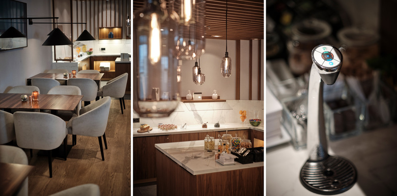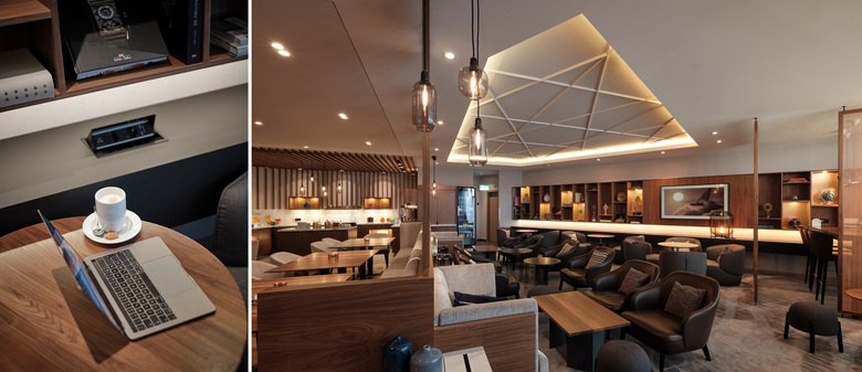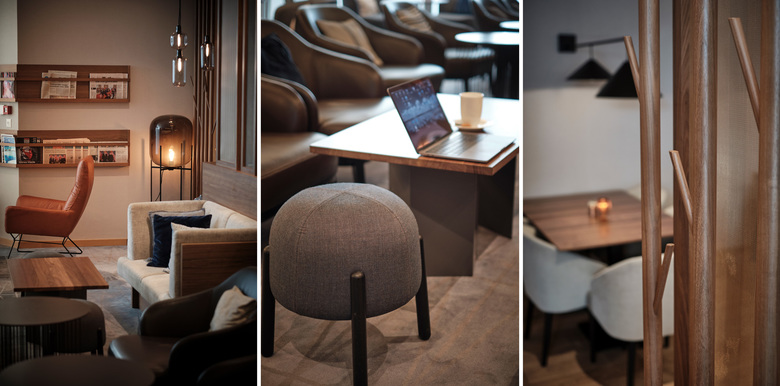 Die erste M Club Lounge für Europa: Rückzug, Entspannung, ein Platz zum Arbeiten und auch Genuss waren die Eckpfeiler für den Entwurf des neuen Leitbilds einer nächsten Generation von Executive Lounges. Um den Gast auf den Standort einzustimmen, wurden im Fall von Zürich Inspirationen vom Zürichsee, der Limmat und natürlich dem Blick auf die Berge in der Ferne aufgenommen und in das Konzept integriert: Blaue Farbakzente in einem sonst Ton in Ton und in Erdfarben gehaltenen Kanon prägen das Bild und verweisen auf den besonderen Ort mit einem starken Bezug zur Natur.