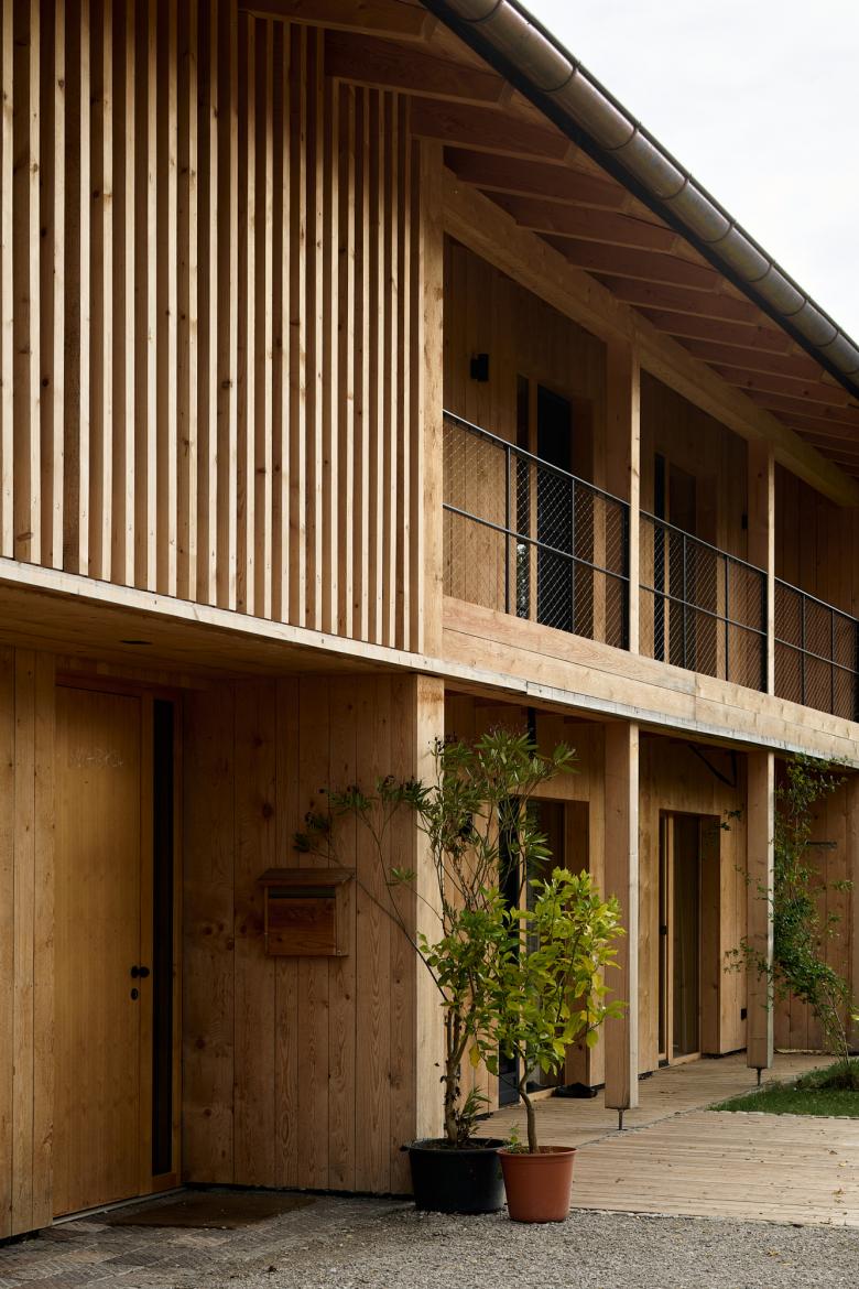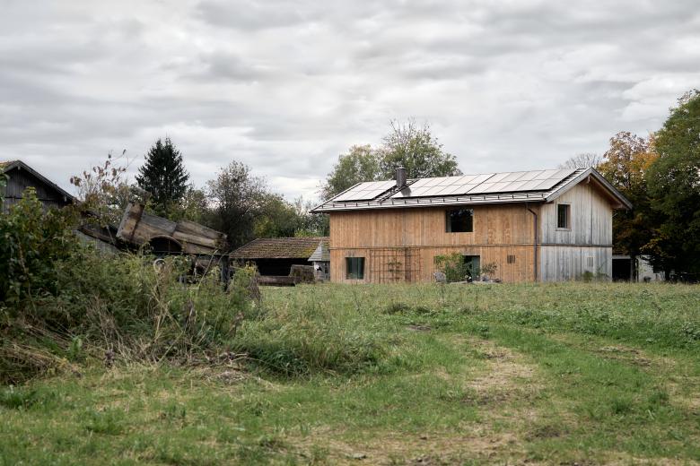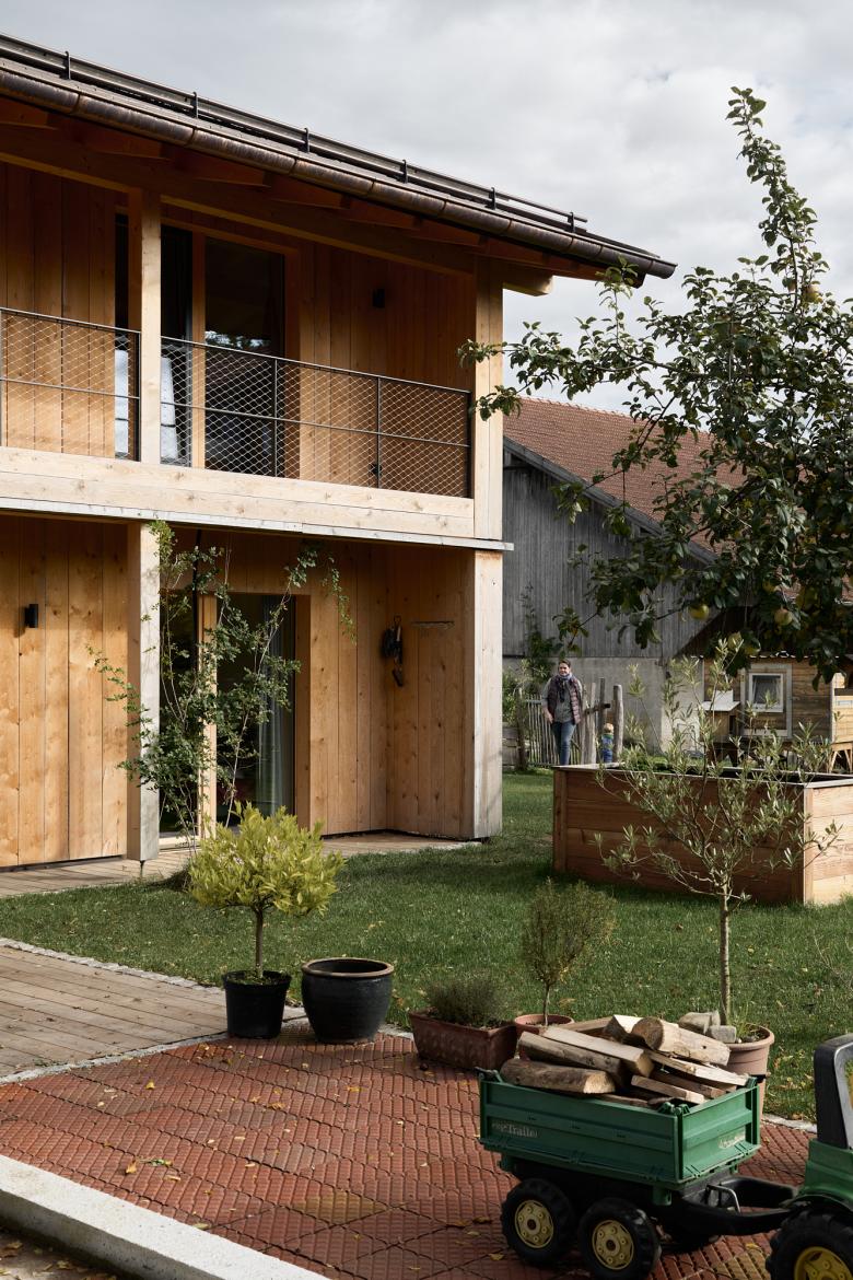 'Barn House' was inspired by the local farm building vernacular in Bavaria. This family home is honest and authentic, sustainably built from wood from the homeowners' forest. It was important to me to include the surrounding farm context in the photographic documentation, as it has a significant influence on the design, including capturing the chickens roaming wild during the shoot.
