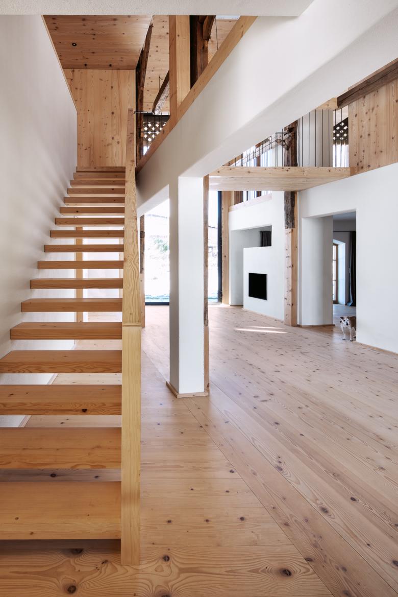 This existing Bundwerkstadel is a beautiful traditional building with intricate details throughout its facade. The remodelling of the interior has a contemporary feel yet respectful and sensitive to the former architectural style. The layout is a labyrinth of connecting spaces, steps and bridges, a fun-house of sorts.