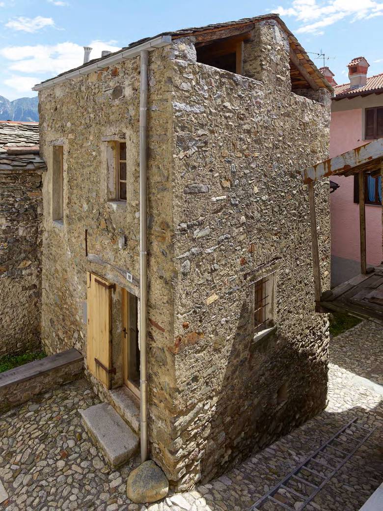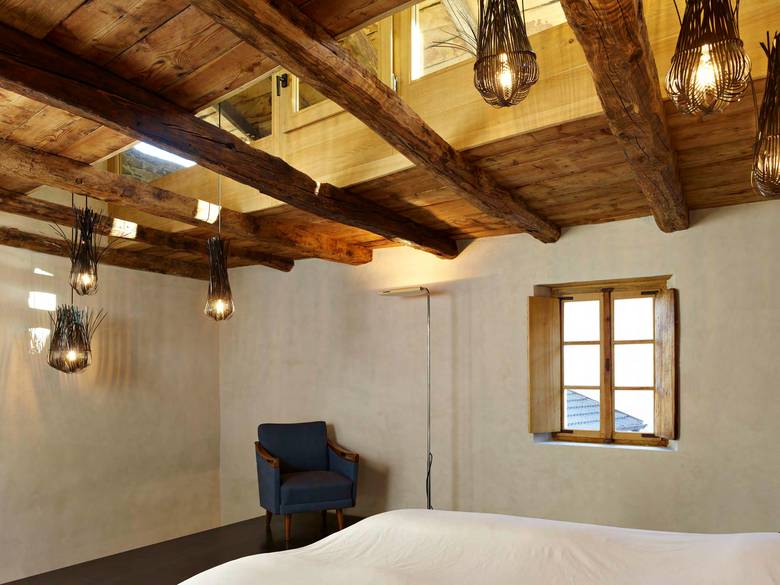 Eine spezielle Dachkonstruktion erlaubt ein für die Region typisches, nicht isoliertes Steindach mit Öffnungen in den seitlichen Fassaden. Unter dem traditionellen Satteldach verbirgt sich ein isoliertes Flachdach. Von dessen Mitte aus erhebt sich beidseitig eine Fensterfront, welche das Obergeschoss mit indirektem, natürlichem Licht flutet. Alle bestehenden Fenster und Innenfensterläden wurden repariert oder, falls nicht mehr vorhanden, durch neue aus Kastanienholz ersetzt.