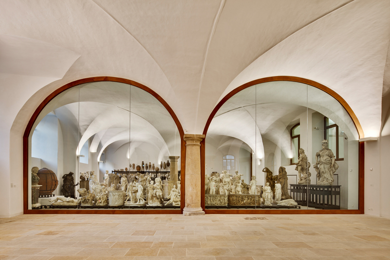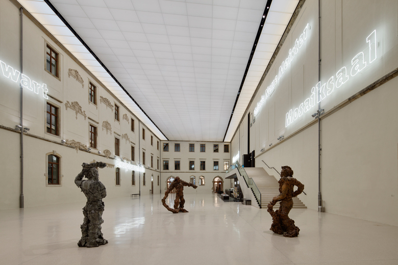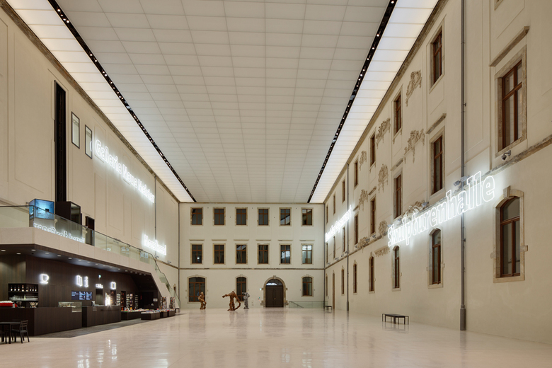Die Sanierung des neuen Albertinums umfasste eine Erneuerung und Neuorganisation des Bestandsgebäudes, wie auch eine Erweiterung um hochwassersichere Depoträume, welche nicht im Innenhof, sondern darüber angeordnet wurden. Durch diese Maßnahme entstand ein Raum, der weiterhin Außenraumcharakter trägt, jedoch vielfältige Innenraumnutzungen zulässt und den unterschiedlichen Ausstellungsräumen einen gemeinsamen Bezugspunkt bietet. Tageslicht und Kunstlicht ordnen sich in die architektonische Formsprache ein und unterschiedliche Szenarien mit entsprechenden Lichtstimmungen und -schwerpunkten betonen die Wirkung des Raums.