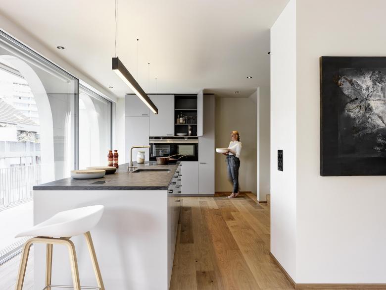 Alle Wohnungen haben einen Balkon und einen direkten Zugang mit dem Lift. Küche, die Sanitärapparate in den Badezimmern sowie alle Bodenbeläge konnten individuell im Rahmen der vorgesehenen Qualität ausgewählt werden.