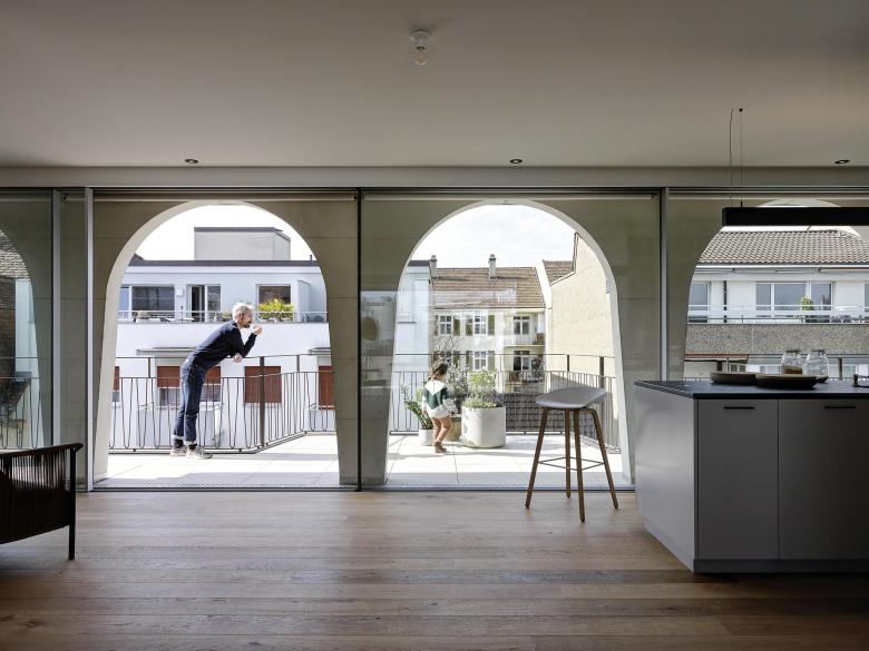 Die 6,5-Zimmer-Maisonette-Gartenwohnung bietet eine grosszügige Grünfläche und schafft mit geräumigen Raumfolgen eine angenehme Wohnatmosphäre. Die Zimmer im Sockelgeschoss verfügen mit dem nutzbaren Aussenhofbereich über viel Tageslicht. Die drei 4,5-Zimmer-Wohnungen in den oberen Geschossen zeichnen sich durch grosszügige Grundrisse aus, die mit der zentralen Anordnung von Küche und Esszimmer ein spannendes, neues Wohnkonzept aufweisen. Das Raumprogramm der Attikawohnung verteilt sich auf zwei Geschosse und bietet mit vier grossen Terrassen viel Platz zum Verweilen sowie eine attraktive Rundumsicht auf die Stadt.
