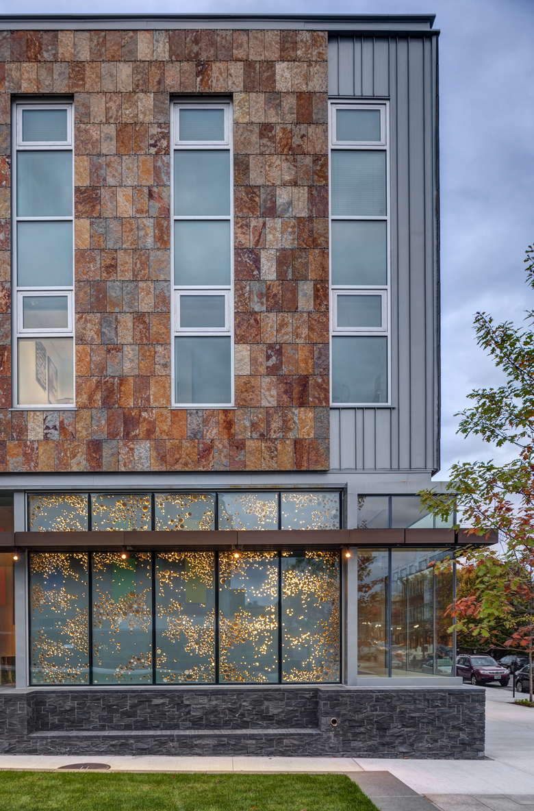 The new Visual Arts Center is designed to achieve a LEED Gold rating. The project utilizes a high performance envelope including foam insulation and triple-glazed windows. HVAC systems direct exhaust air through high efficiency heat recovery wheels. The building incorporates a wide variety of energy saving technologies, including in-floor and chilled beam radiant heating and cooling, occupancy sensors for lighting and ventilation, rainwater collection and reuse and daylight harvesting and daylight sensing lighting systems.