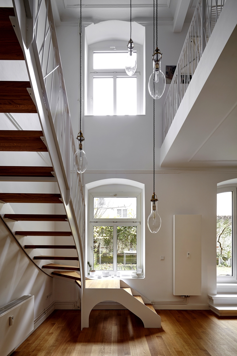 Gründerzeit Stadtwohnung Umbau und Erweiterung. Verbindung von zwei Wohnungen durch neu errichten Treppenraum und denkmalgerechte Sanierung