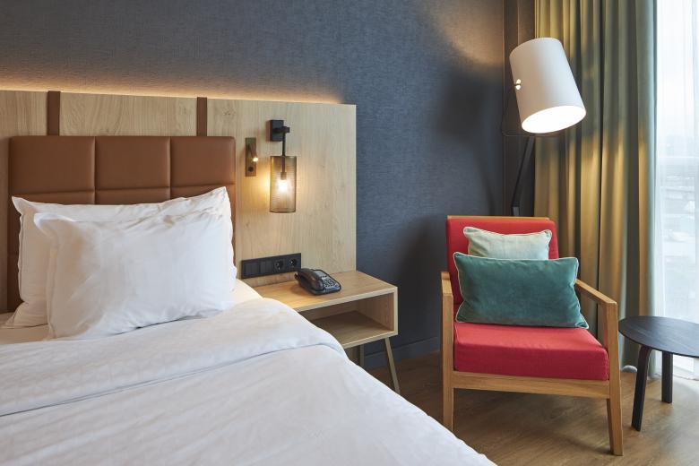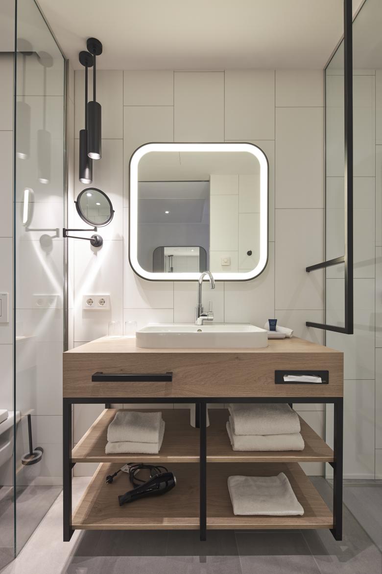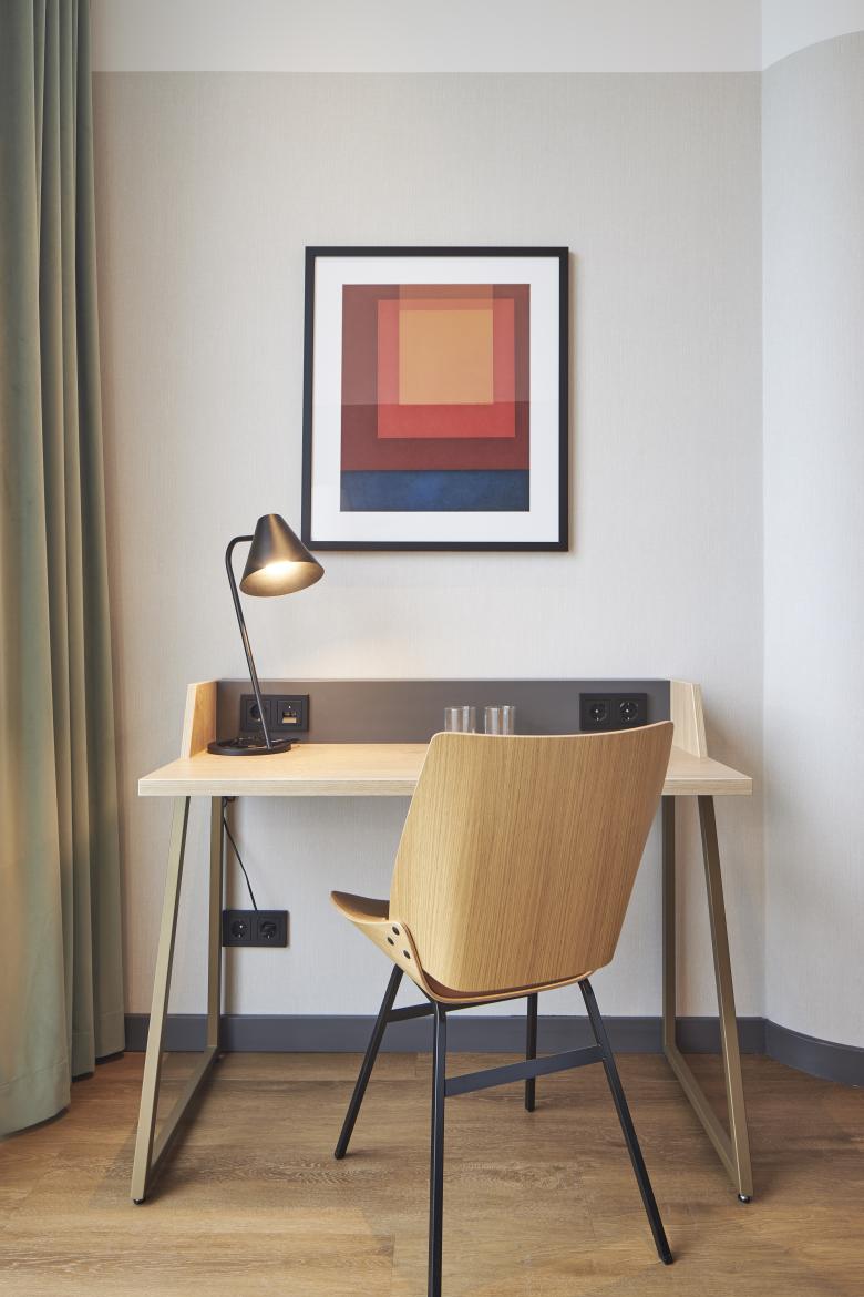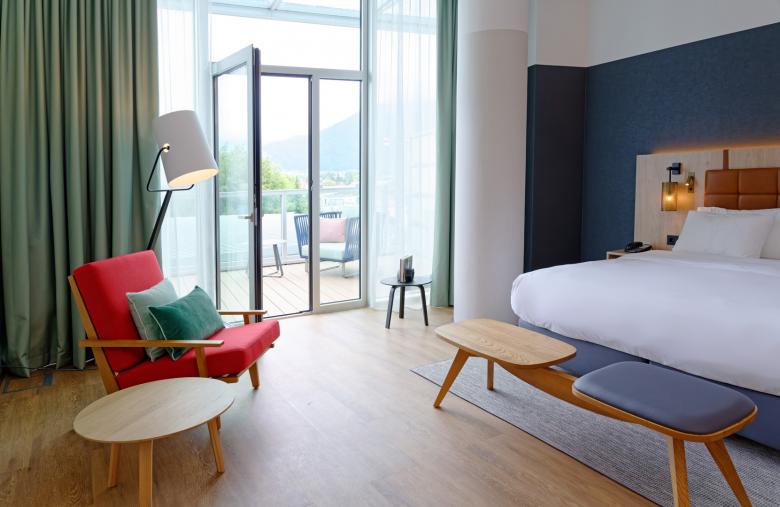 Aus dem ehemalig autarken Fitnessstudio „Home of Balance“ entstanden 42 neue Zimmer, Suiten und Familienzimmer im Midcentury-Modern-Look