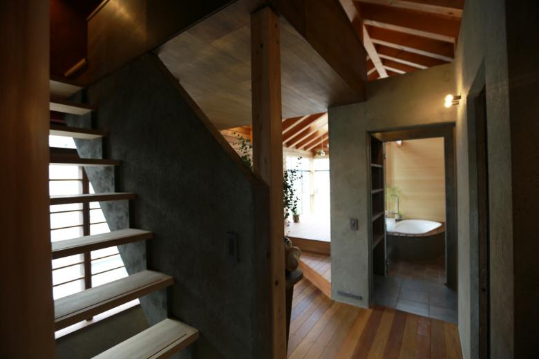 そこで家の中の一番日当たりのいい場所にサンルームのようなインナーテラスを設け、 そこに連続するようなバスルームを計画しました。