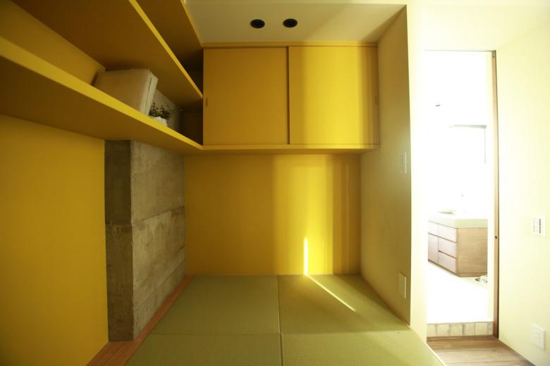 畳の書庫として作った黄色の部屋は、実はこの家で一番人気の寝室になっています。不思議。