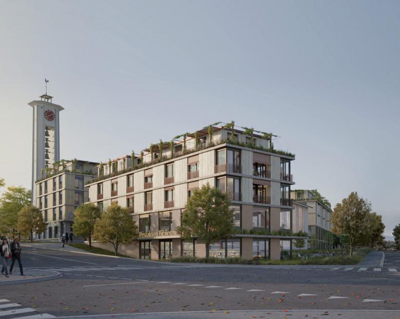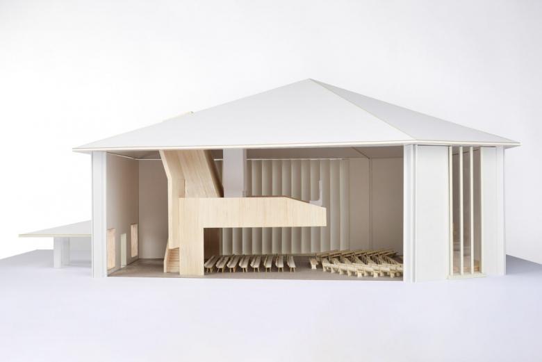 Der Charakter eines hybriden Gebäudeensembles aus unterschiedlichen Volumen mit jeweils identitätsstarker Typologie wird durch das Hinzufügen von vier zusätzlichen Gebäuden erweitert. Vier klare, einfache Baukörper ergänzen das Ensemble und versammeln sich um den zentralen Platz als Zentrum des Gemeindelebens. Zwischen den Körpern öffnen sich die Räume in die offene Umgebung und vernetzen die Mitte mit dem Quartier.