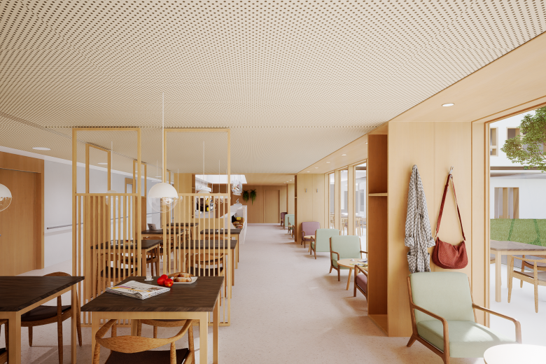 The project follows the KDA (Kuratorium Deutsche Altershilfe) principles—supporting privacy, community, and social integration. This modern "fifth-generation" model promotes both independence and care, with flexible spaces that can quickly adapt in case of health emergencies.