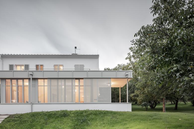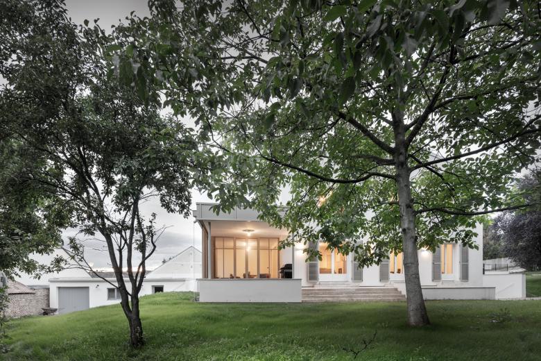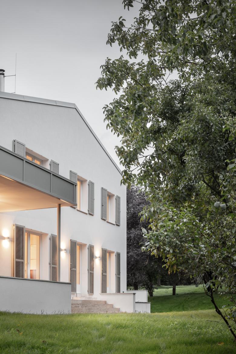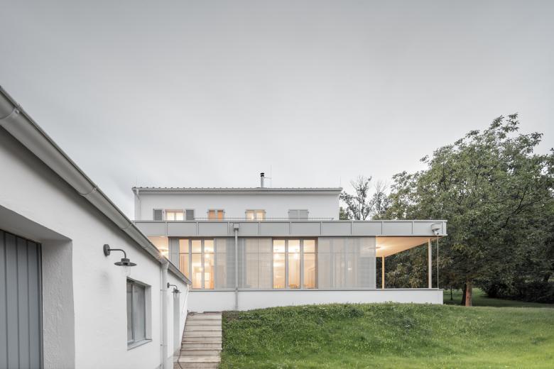 By adding a single-story south-facing extension, new terrace areas and external stairs, as well as carefully adapting the window positions and sizes, the project succeeded in completely transforming the appearance and character of the building without upending the basic structure of the house. The extension combines three functions in a single volume: on the one hand, a vestibule and cloakroom, and on the other, a dining room as an extension of the living area and a covered outdoor area. The upper part of the extension serves as a terrace in front of the master bedroom.