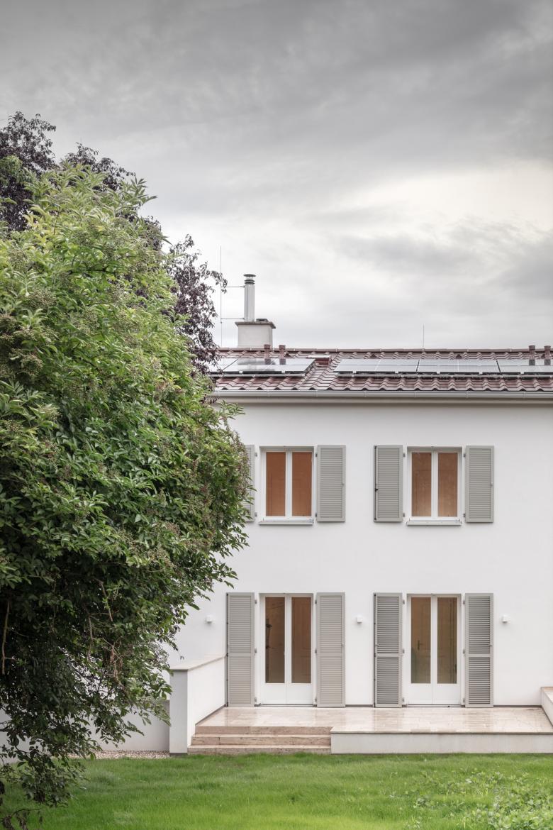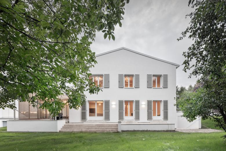 This is the conversion of a building from the 1960s. The existing structure was characterized by an unattractive appearance, a very unsatisfactory entrance, convoluted vertical access, a lack of connection to the garden, nonexistent terrace areas, and completely outdated building services.