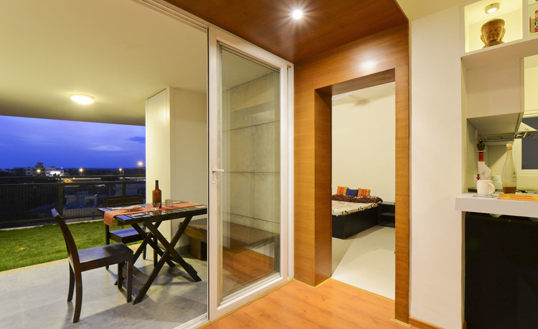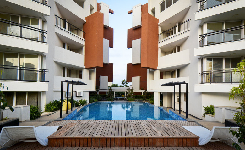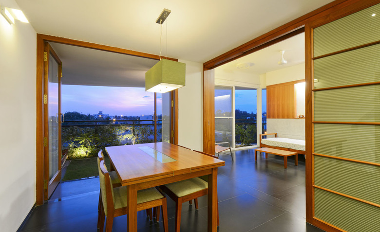 The idea here was to introduce a sense of relation with the ground by introducing green spaces adjacent to the living spaces. An open space like a verahdah which becomes a common space for interaction is also introduced adjoining the landscape region. Contrasting materials were introduced to segregate public-private zones. The heavy opaque inner skin in the inside divides the lobby and living spaces within the units. It defines the directionality and the scaling of the surfaces. Whereas the light transparent glass in the outer skin gives the openness to the exterior and acts as the source of light.