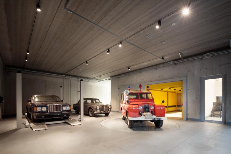 Parkhaus für Oldtimer | Bei diesem Projekt dreht sich alles um Oldtimer-Fahrzeuge. Diese haben einen hohen finanziellen, aber auch kulturellen Wert. Für Ihren Erhalt benötigt es eine adäquate Unterbringung mit speziellen Rahmenbedingungen. Diese bietet, auf dem Areal der ehemaligen Fritze-Lacke-Fabrik in Wien-Hetzendorf, das „Classic Depot“ auf gesamt rund 5.250m2. Das Gewerbeobjekt vereint rund um das Thema Oldtimer folgende Funktionen: Tiefgaragenebene für 50 Fahrzeuge, im Erdgeschoß Werkstatt, Anlieferung mit Drehscheibe und PKW-Aufzug, Fahrzeugaufbereitung und Spenglerei/Lackiererei. Im Obergeschoß 1 und 2 befinden sich die Einstellflächen für die Fahrzeuge. Diese Flächen sind beheizt, belüftet und die Fassade mit UV-Schutzgläsern sowie außenliegendem Sonnenschutz ausgestattet. Ergänzt werden die Einstellflächen durch einen 3-seitig verglasten Besprechungs- bzw. Seminarraum mit Blick auf die Fahrzeuge. Der gesamte Bereich ist zum einen zutrittsgesichert und videoüberwacht, zum anderen aber für die Einsteller rund um die Uhr geöffnet.