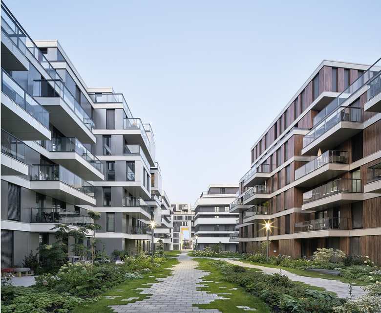 An der Chausseestraße als der ältesten Verbindung zwischen dem Zentrum Berlins und dem Stadtteil Wedding entsteht – genau da, wo der Grenzraum zwischen Berlin (West) und Berlin (DDR) in den neunziger Jahren nur eine öde, leere Fläche übrig ließ – eine größere bauliche Anlage, deren Konzept auf Berliner Vorbilder des späten 19. Jahrhunderts rekurriert. Riehmers Hofgarten im Stadtteil Kreuzberg und der Amalienpark im Stadtteil Pankow sind Ensembles prächtiger Mietshäuser, die jeweils ein Viertel oder eine Hälfte eines vollen Quartiers in Anspruch nehmen und durch die jeweils schmale Wege und grüne Räume von der einen zur andern Straße führen.