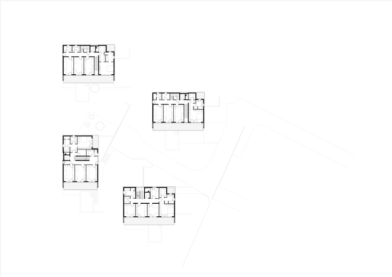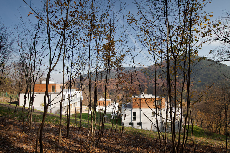 Die 4 Häuser wurden so positioniert und ausgerichtet, dass ein Maximum an Aussicht und Besonnung, aber auch an Privatsphäre geschaffen werden konnte.