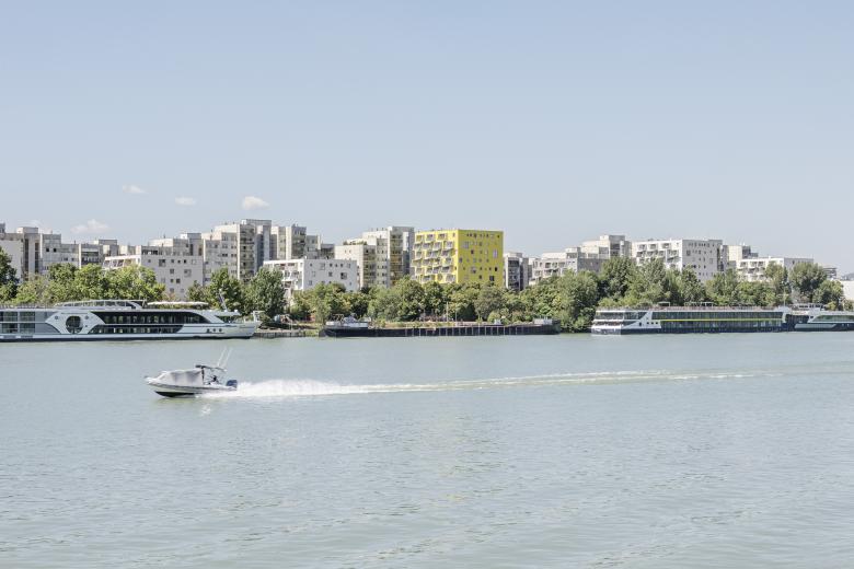 Die neuen Gemeindewohnungen am Handelskai schaffen hohe Wohnqualität für bestehende und neue Bewohner*innen. MIt schlanken Baukörpern und einem durchgehenden Gartendeck als "fünfte Fassade" ensteht ein gemeinschaftliches und offenes Wohnumfeld mit Donaublick für die ganze Nachbarschaft.